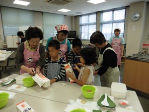 その後は、農業創造センターにて親子で笹寿司作りに挑戦しました。また、ちゃぐりんを用いて食農に関するクイズを楽しんでもらいました。